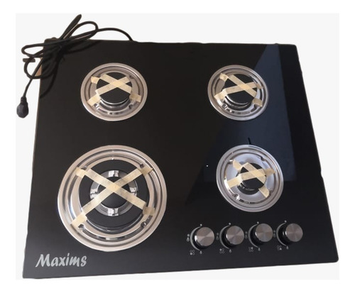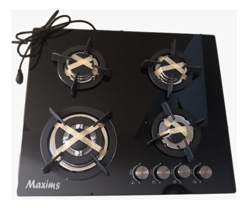 Estufa Empotrable Maxims Jzbs4s Gas Glp 4 Hornallas Negro Vidrio Templado