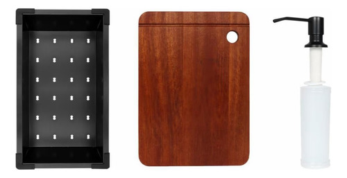 CUATRO PIEZAS ( TARJA, DISPENSADOR DE JABÓN, TABLA Y ESCURRIDOR)