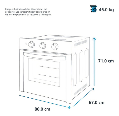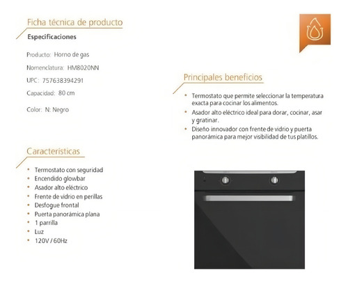 Horno Empotrable A Gas Con Grill Eléctrico Mabe Hm8020nn 80l Negro