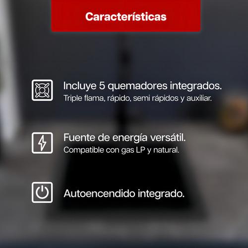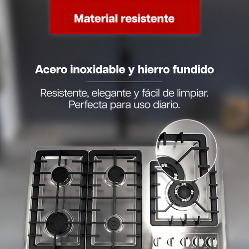 – 5 quemadores a gas para mayor versatilidad: